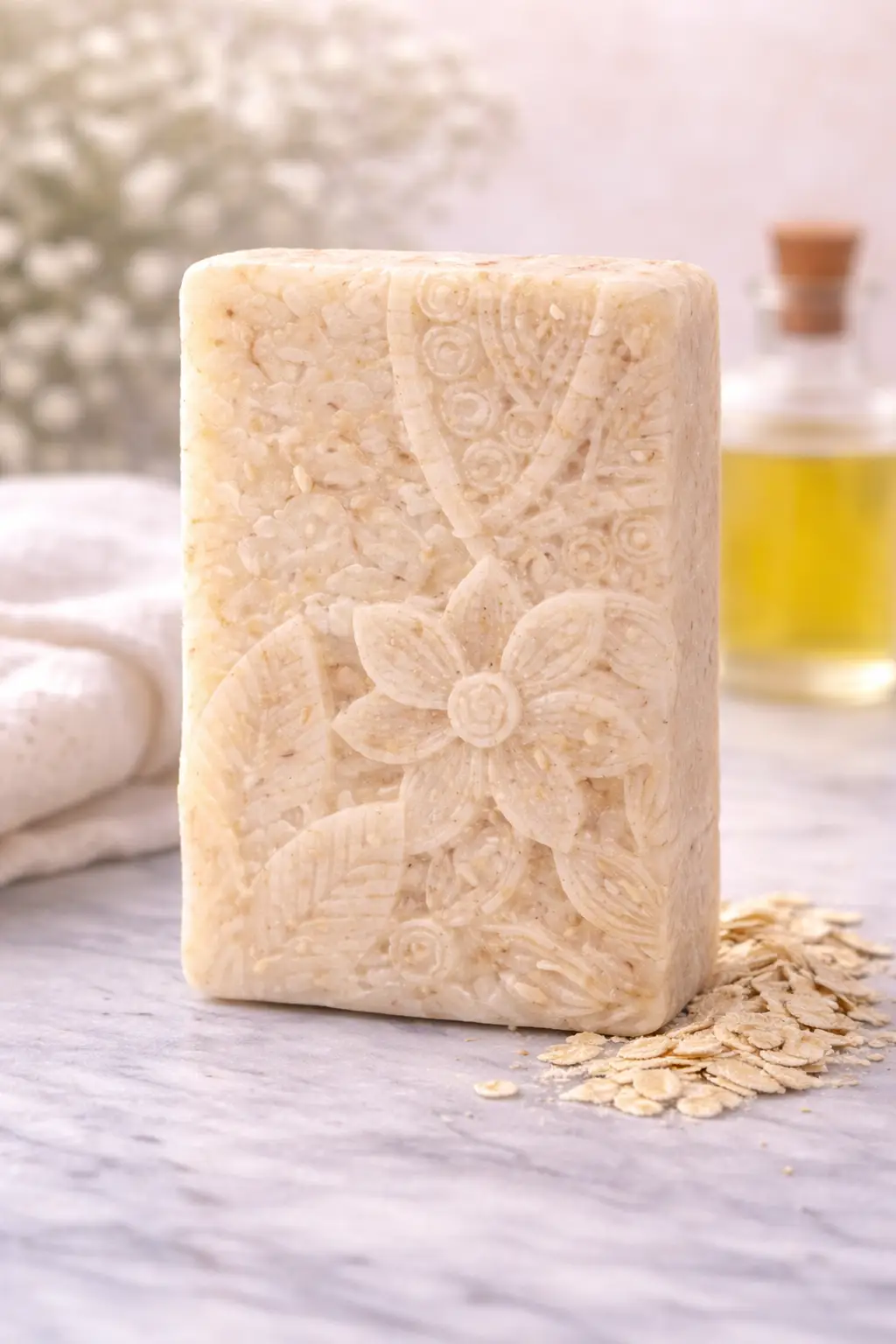 Organic Oatmeal Soap Base, Jojoba Oil, Sweet Almond Oil, Oatmeal, Vitamin E