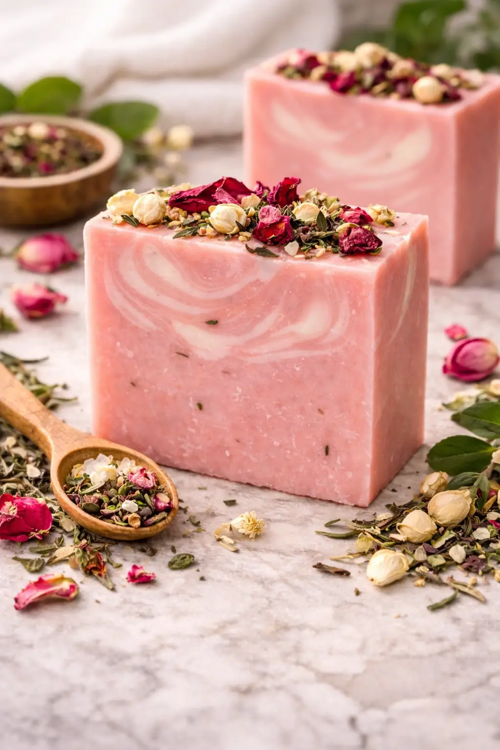 A luxurious cold-pressed tallow soap designed to deeply nourish and gently cleanse. Rich beef tallow creates a creamy, skin-loving lather while rose and white tea offer a calming, elegant finish. Blush pink with soft cream swirls, this bar transforms your daily wash into a refined, restorative ritual.