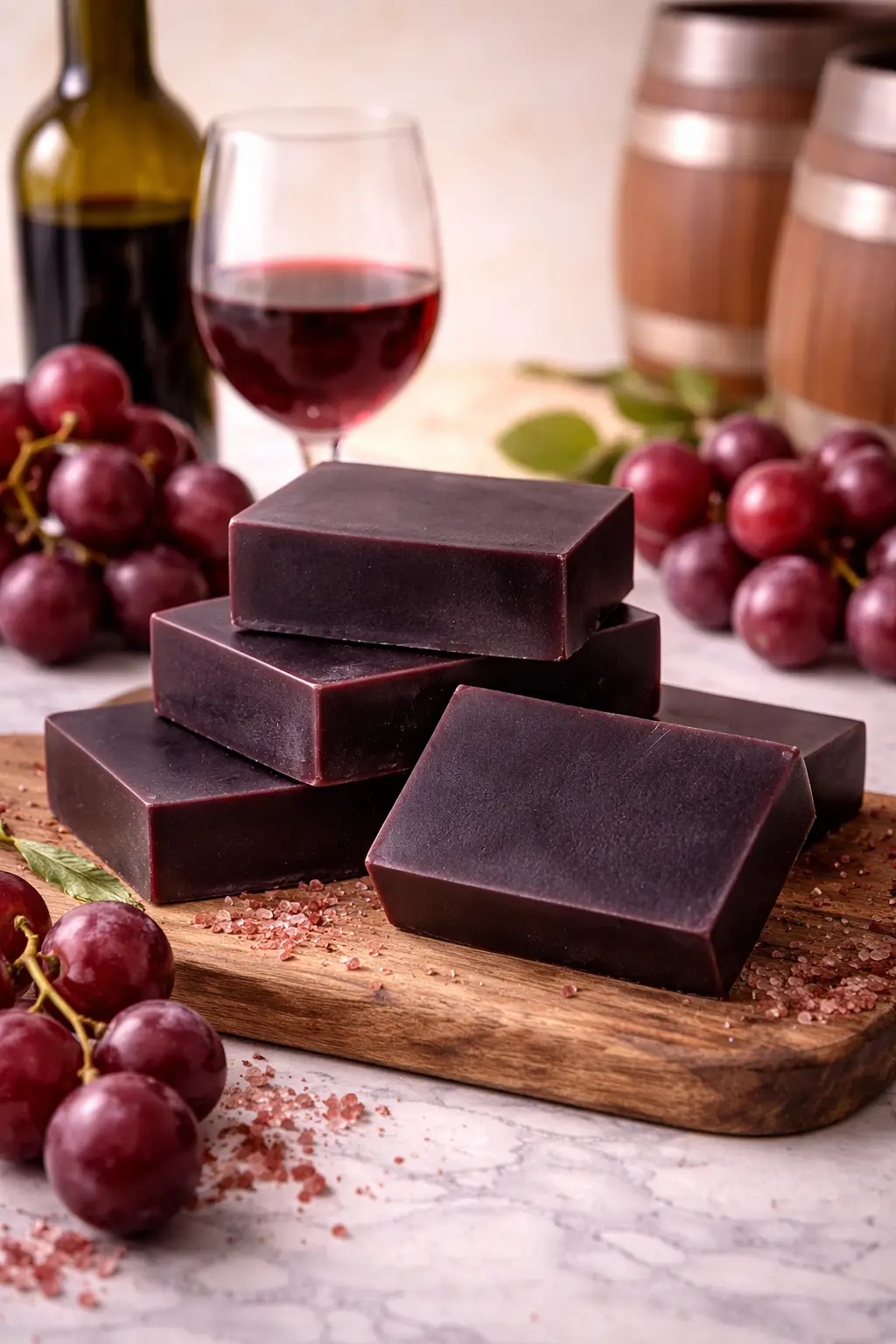 Wine soap has long been valued for its naturally occurring antioxidants, which help the skin feel refreshed, smooth, and renewed. The vegetable glycerin base provides a gentle, moisturizing cleanse, making this soap perfect for daily use while still feeling indulgent.