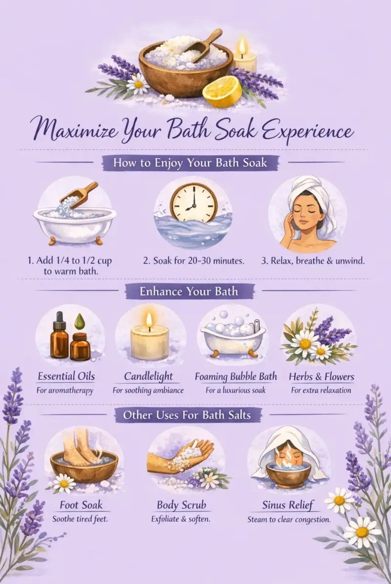 For a cleaner soak, place in a muslin bag or cloth before adding to bath.